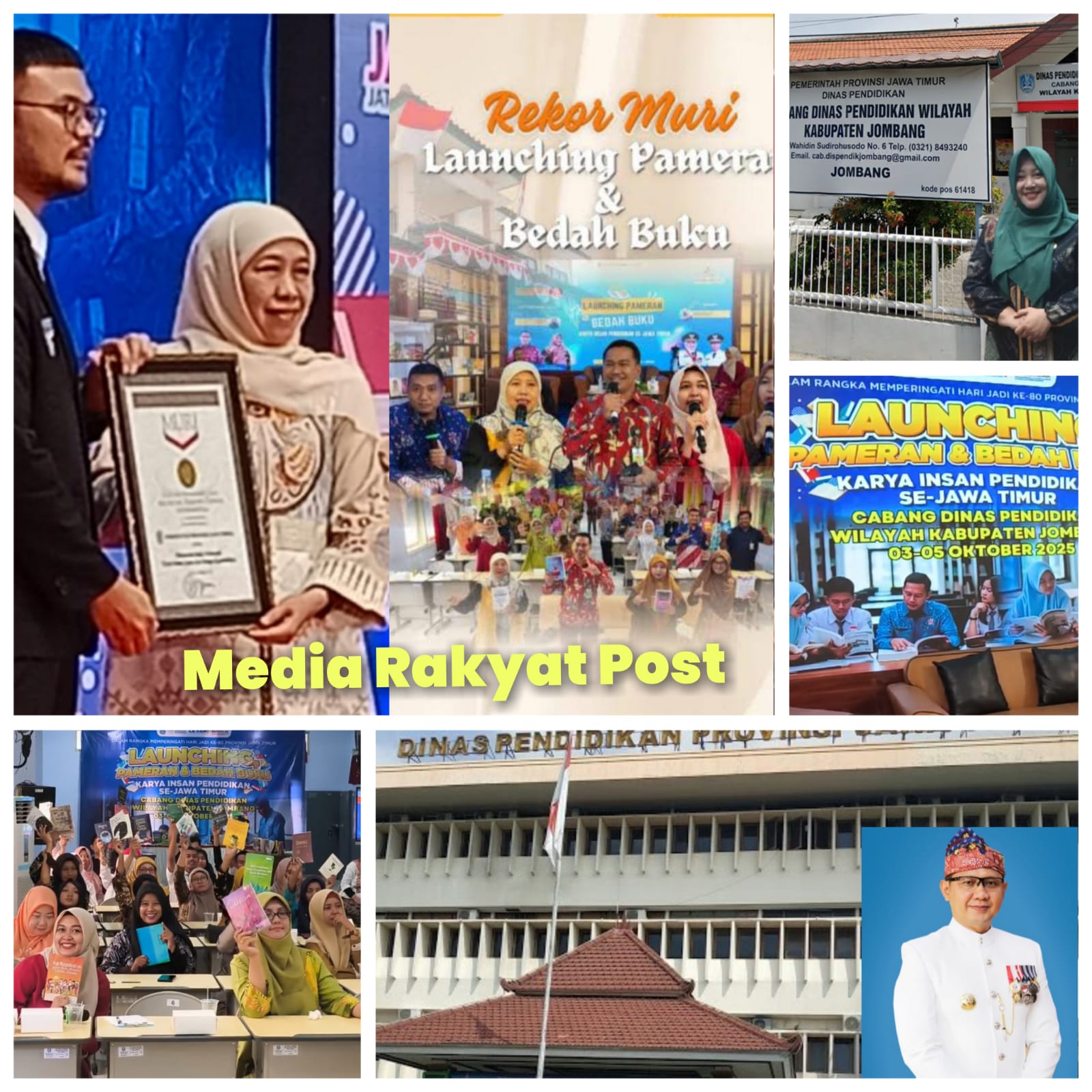 JOMBANG, Mediarakyatpost,– Cabang Dinas Pendidikan (Cabdindik) wilayah kabupaten Jombang mendukung program Dinas pendidikan (Dindik) provinsi Jawa timur (Jatim) dengan kegiatan Launching pemeran dan bedah buku untuk pecahkan rekor muri tahun 2025. bertempat Atrium Grand City Surabaya, Sabtu (4/10/2025). sedangkan Cabang Dinas Pendidikan wilayah kabupaten Jombang mengikuti secara virtual lewat layar monitor yang diikuti oleh para kepala sekolah SMA/ SMK, perwakilan para siswa, dan insan pendidikan. Acara tersebut diresmikan langsung oleh Gubenur Jawa Timur, Khofifah Indar Parawansa