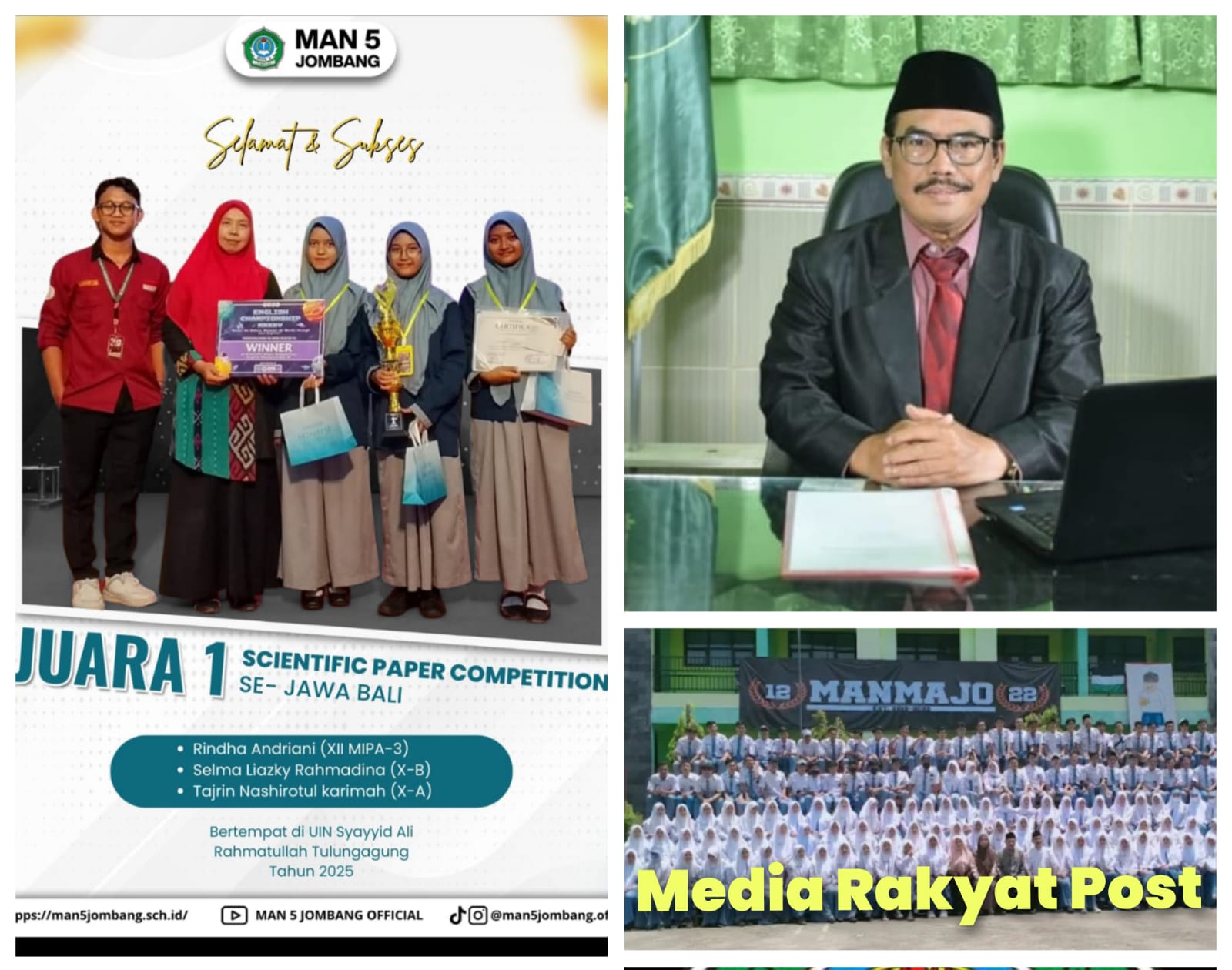 Jombang, Media RakyatPost.com – Madrasah Aliyah Negeri (MAN) 5 kembali meraih prestasi akademik dengan mendapatkan juara 1 scientific paper competition Se Jawa-Bali yang diselenggarakan oleh Universitas Islam Negeri (UIN) Syayyid Ali Rahmatullah Tulungagung.