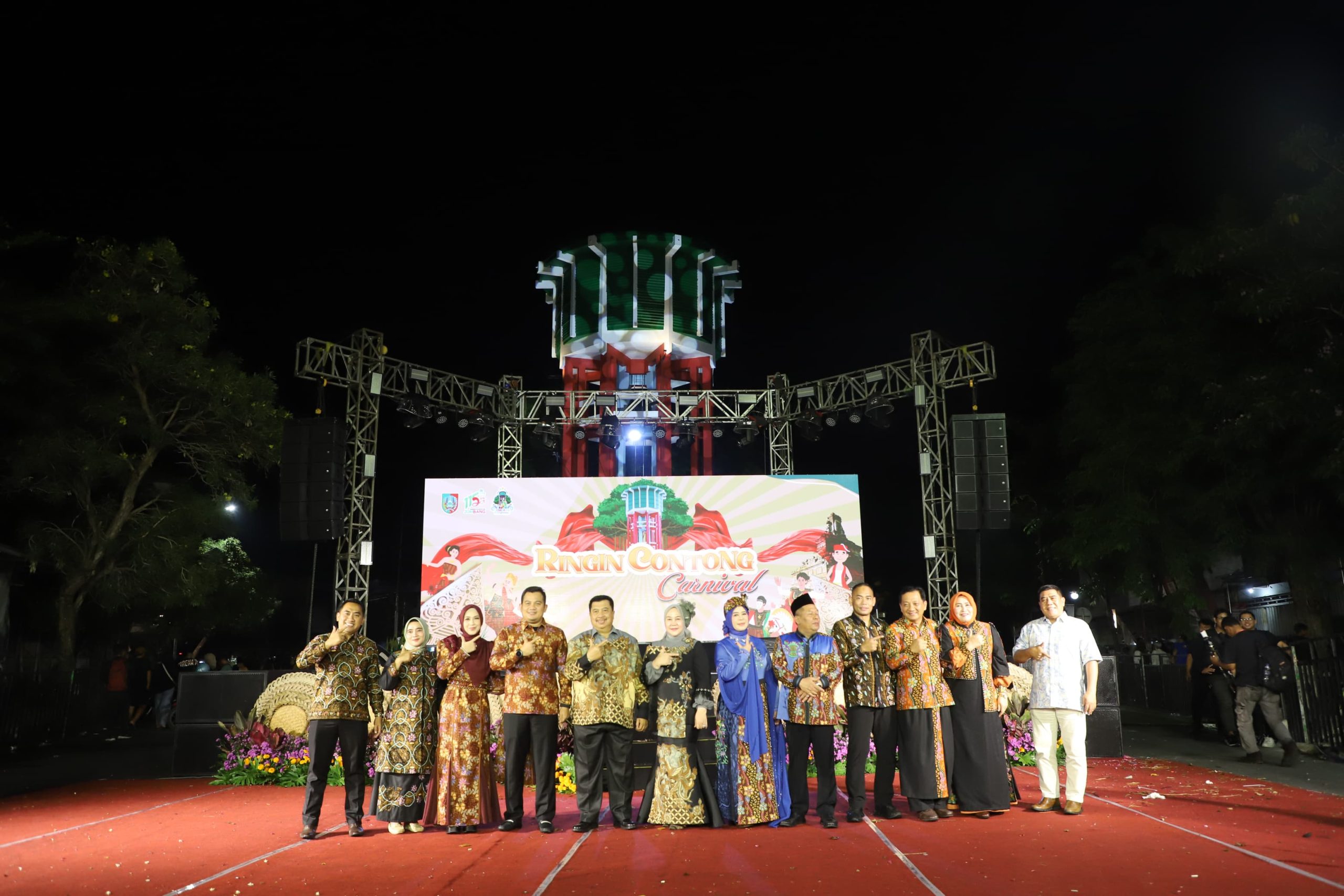 “Puji syukur kita panjatkan ke hadirat Allah SWT, Tuhan Yang Maha Kuasa, atas rahmat dan karunia-Nya sehingga kita dapat ikut bersama dalam suasana penuh semangat dan meriah pada acara Ringin Contong Carnival,” ujar Bupati.