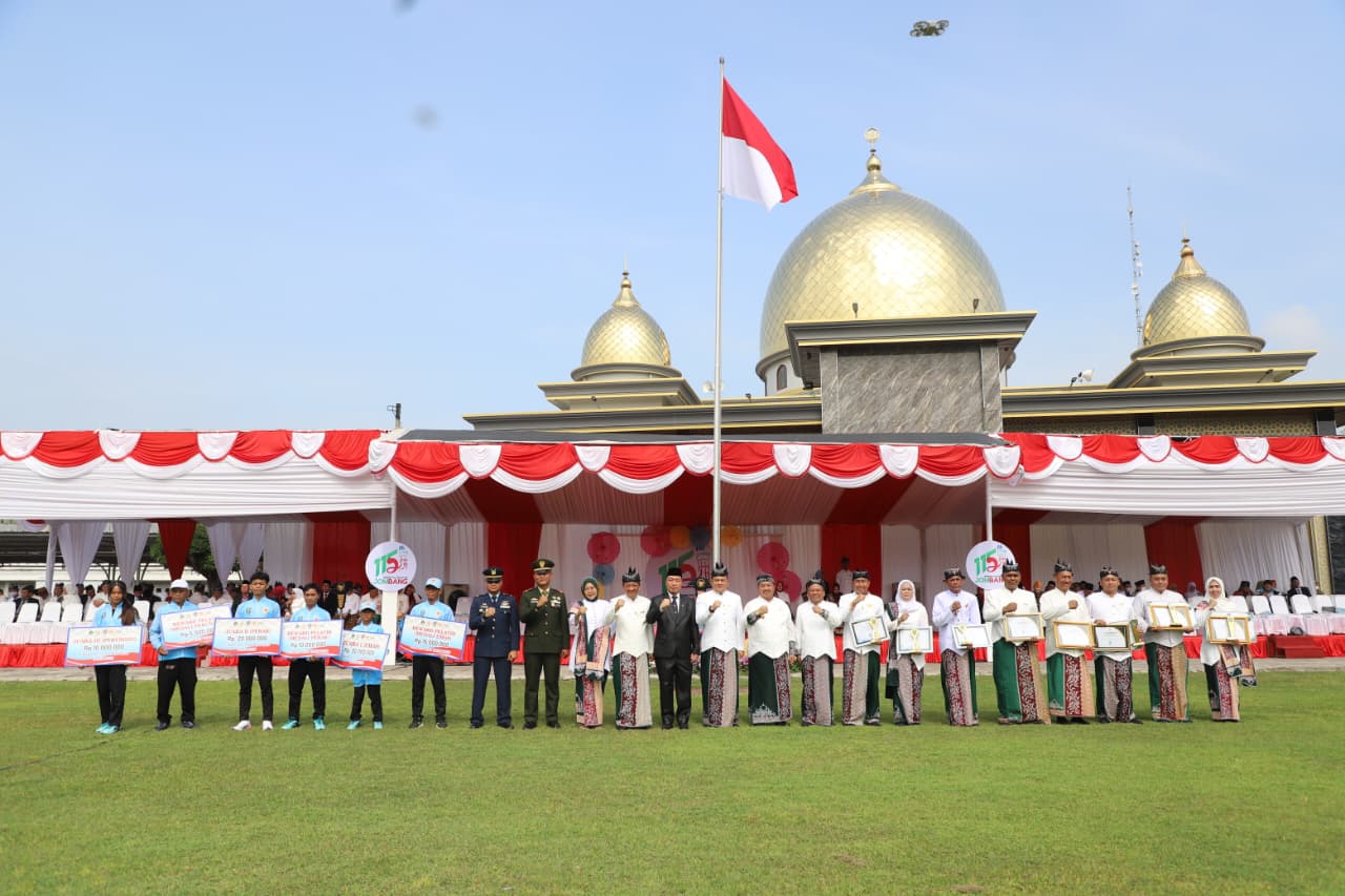 Diakhir upacara, Bupati Jombang didampingi Forkopimda menyerahkan secara simbolis bonus prestasi atlet dan pelatih Pekan Olahraga Provinsi (Porprov) Jatim IX tahun 2025, serta menyerahkan penghargaan